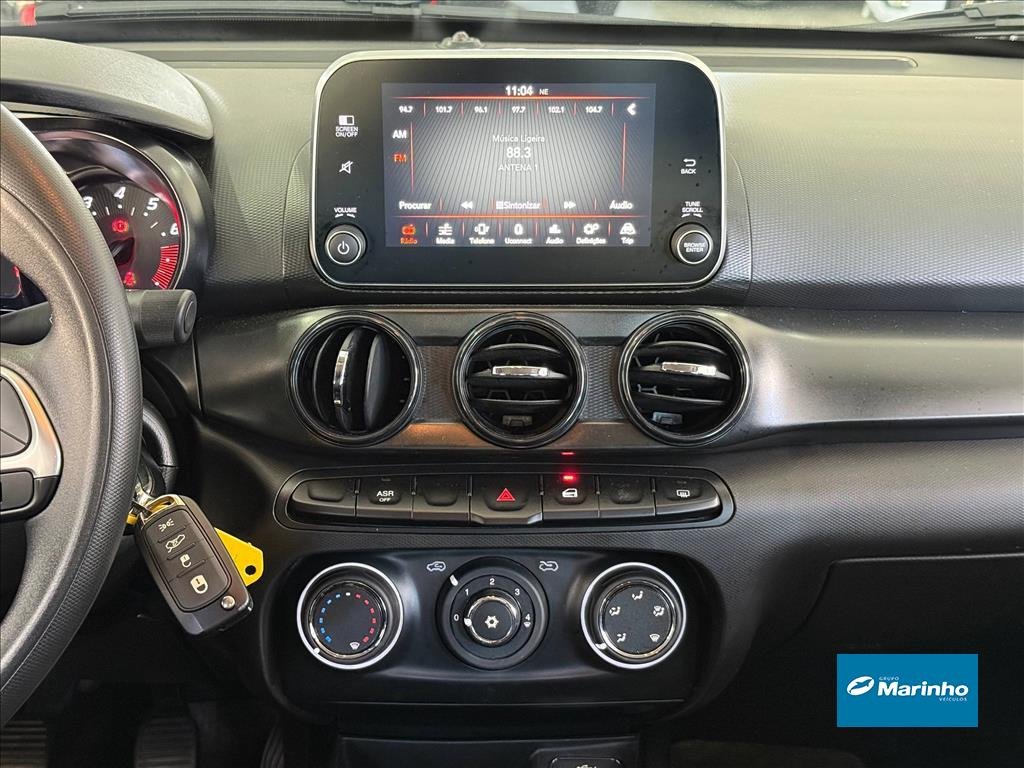 Destaques: Motor 1.0 Flex de até 75 cv, câmbio manual de 5 marchas, direção elétrica, multimídia, câmera de ré, sensores de estacionamento, ar-condicionado e rodas de liga leve.